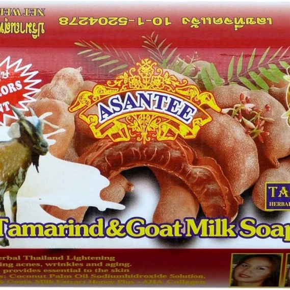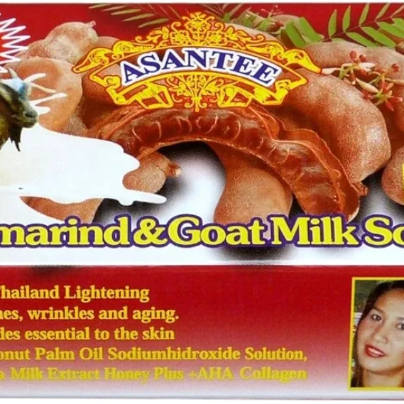 Asantee Tamarind & Goat Milk Whitening Soap with Honey is a natural soap from Thailand that claims to have whitening, anti-aging, and anti-acne benefits. It contains coconut oil, honey, tamarind, goat milk, and AHA collagen as its main ingredients