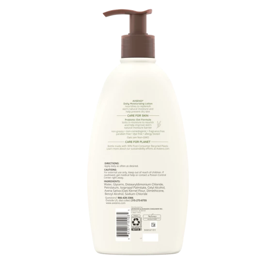 Intensely nourish dry skin with prebiotic oat formula. The gentle daily lotion nourishes & helps replenish skin's natural moisture barrier & has clinically proven moisturization that lasts 24 hours.