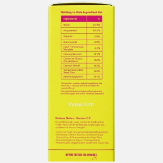 4% niacinamide to improve the appearance of uneven skin tone and texture, dullness, and enlarged pores