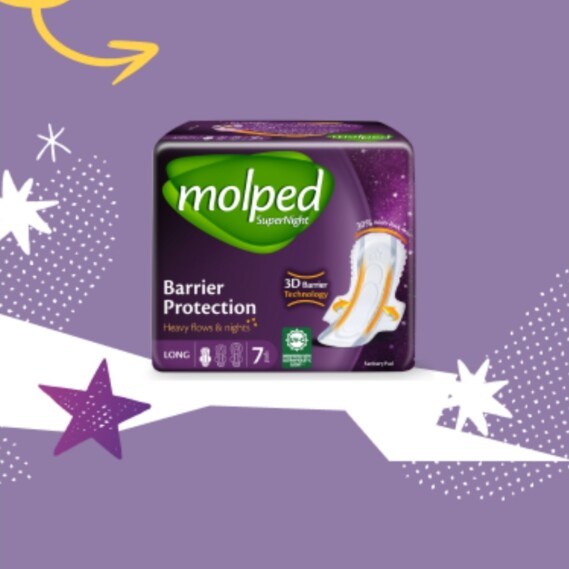 Molped Supernight prevents leakage during busy days and nights thanks to its cottony 3D barriers and wide back surface.