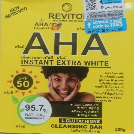 REVITOL PURE SCIENCE, PERFECT SKIN AHA INSTANT EXTRA WHITE SPF 50 CLEANSING BAR 200G