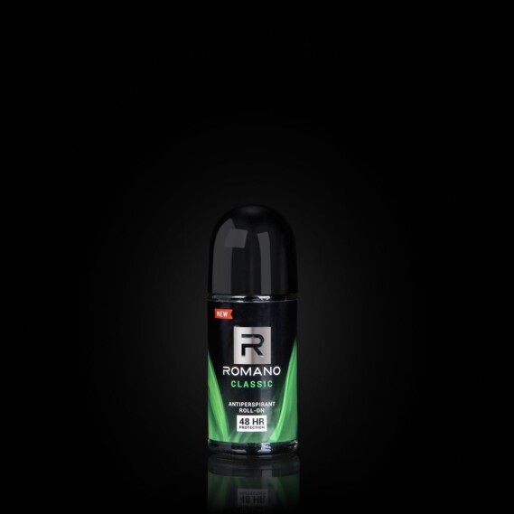 Feel confident and refined with the unique scent of Romano Classic Antiperspirant Roll-On.