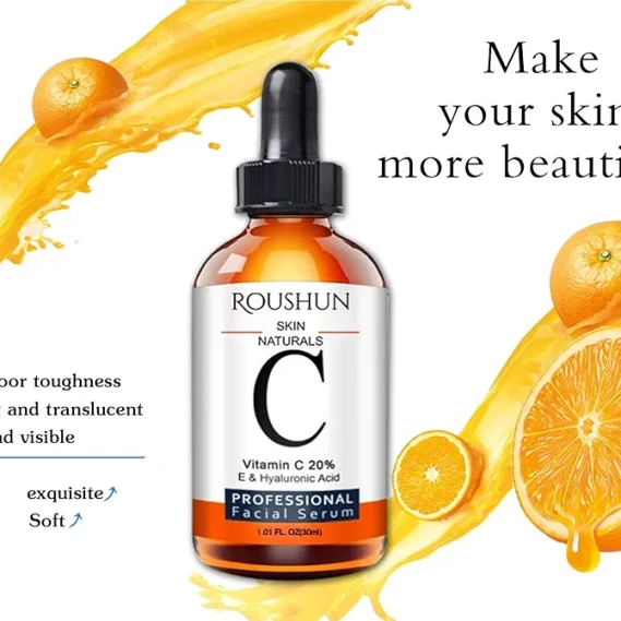 Roushun Skin Naturals Vitamin C 20% E & Hyaluronic Acid Face Serum is an antioxidant-rich formula designed to address signs of aging. Key ingredients include: