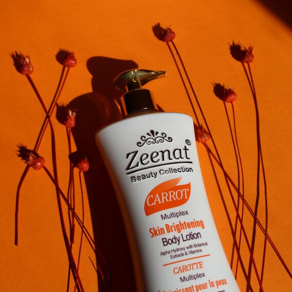 Zeenat Carrot Skin Brightening Lotion is a skin-perfecting emulsion targeting dark spots while providing necessary hydration. The lotion helps to plump and nourish the skin using antioxidants and vitamins with alpha hydroxy-which has great benefits such as skin protection and leaving it more supple, and gradually free of blemishes.