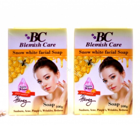 Blemish Care Snow white Facial soap composed with pure Thailand Honey and several kinds of antioxidant fruits which are rich in fighting aging of the facial skin. It washes away dirt's and germs buy removing dead skin cells formation. It removes black spots,acne and maintain skin moisture balance. Daily use lives your face naturally white,radiant, soft and smooth.