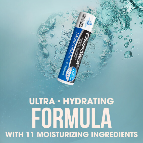 ChapStick® Moisturizer Original is the classic lip balm you’ve always trusted, but with a little something extra. Yes, it still glides on smooth and shields your lips from the wind and the cold. Yes, it still softens and protects your lips without feeling waxy, sticky or greasy. But the added bonus is ChapStick® Moisturizer Original’s ultra-hydrating formula and SPF 15 sun protection. So, in addition to helping prevent and heal dry, chapped lips, this ChapStick® will shield your delicate lip skin from the damaging effects of the sun. Think of ChapStick® Moisturizing Original as the classic but supercharged – for lips that need that little something extra.