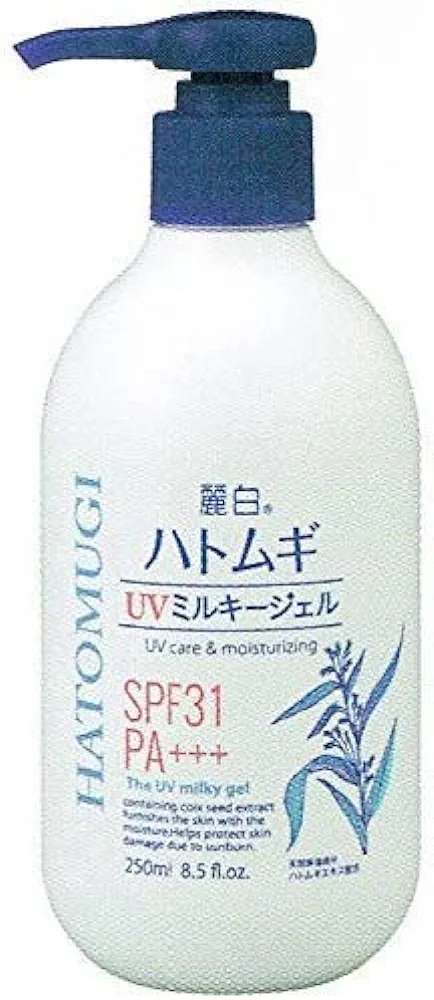 Reihaku Hatomugi Uv Milky Gel Spf 50 is a sunscreen gel that contains coix seed extract, a natural moisturizing component. It has a high SPF rating of 50+ and PA++++, which means it can protect your skin from both UVA and UVB rays. It is suitable for both face and body, and it has a light and non-sticky texture. It also helps to brighten the complexion and prevent skin imperfections.