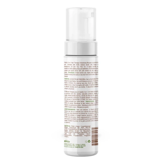 Vitale’s 3-in-1 Hair Therapy Volumizing Mousse is alcohol-free and blended with three natural exotic oils: Argan Oil, Macadamia Oil and Tea Tree Oil. It helps nourish and moisturize while adding body and definition. Formulated to build volume and boost shine with soft control for any style you desire.
